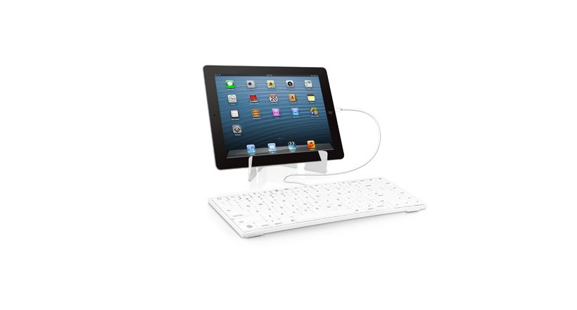 Este modelo es ideal para usar en lugares donde las conexiones inalámbricas no están permitidas como aviones o algunas oficinas del estado. El teclado tiene las dimisiones estandar, está construido en un material resistente y posee teclas con atajos especialmente pensadas para dispositivos iOS, como: capturar imagen de pantalla, buscar, reproducir, próxima / previa canción, pausa y control de volumen. En la parte inferior el teclado incluye cuatro piés de goma que evitan que se deslice, y dos patas que permiten inclinarlo para que su uso sea más cómodo. Además este modelo incluye un soporte para el iPad y una garantía de 5 años.