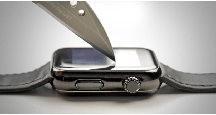 En las dos versiones más caras del reloj de Apple, el Apple Watch Edition de oro y el Apple Watch de acero inoxidable, la pantalla está protegida por un cristal de zafiro que en las pruebas preliminares ha probado ser extraordinariamente resistente. Sin embargo en el modelo más económico y que la mayor parte de los consumidores va a comprar, el Apple Watch Sport de aluminio, la pantalla es protegida por un vidrio reforzado al que Apple llama Ion-X.